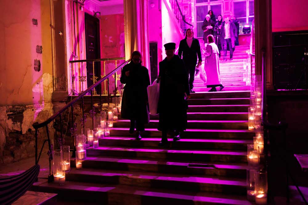 Во внутреннем дворе особняка с богатой историей сегодня располагается калифорнийский пляж с горящими кострами, золотым песком и шезлонгами. По выходным здесь проходят вечеринки под открытым небом, на которых ценители актуального искусства могут насладиться концептуальным звучанием и специально созданным для пространства видеоартом на большом экране, а также подборкой авторского кино. В летний сезон во дворе выставляются работы современных художников — как молодых и начинающих, так и уже известных широкой публике.