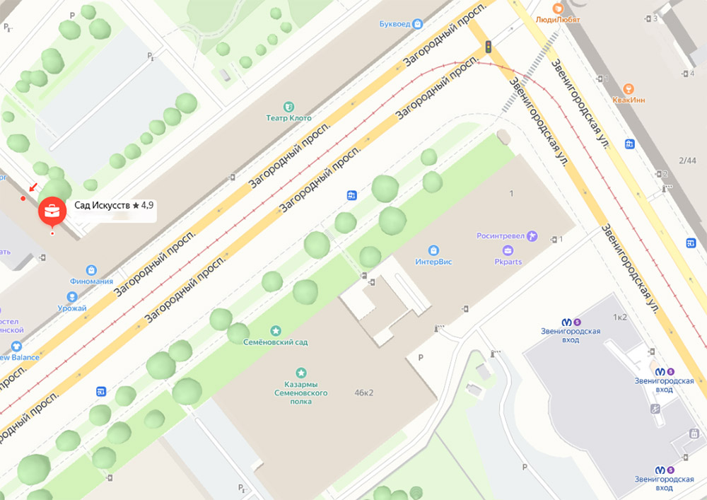 Арт-пространство «Сад Искусств» находится в самом центре Петербурга, в пяти минутах ходьбы от станций метрополитена «Звенигородская» и «Пушкинская».