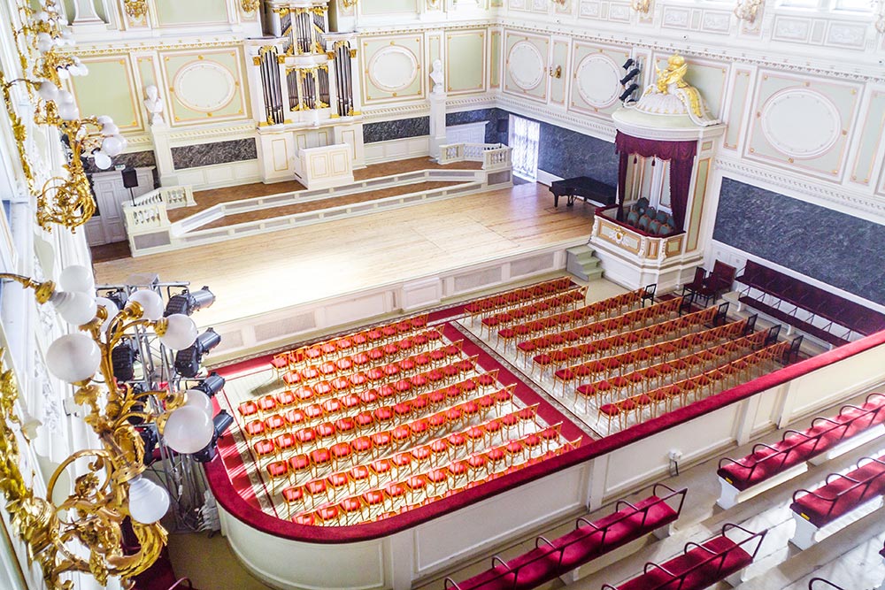 Концертный зал Капеллы, построенный в 1889 году Леонтием Бенуа, — один из лучших в мире в акустическом отношении, а исторический орган Капеллы фирмы «Валькер», созданный в 1891 году, славится своим неповторимым благородным звучанием. На сцене представлены все виды искусства: музыка, живопись, танец, кино и даже архитектура. Каждый день в концертном зале Капеллы звучат лучшие образцы классической музыки, джаза, разноплановые органные концерты в сочетании с различными инструментами, детские спектакли, этническая музыка, камерные программы, моноспектакли и многое другое. Возможности зала Капеллы практически неограниченны: здесь проводятся концерты по специальным программам, реализуются масштабные проекты с элементами светового шоу. Для желающих проводятся разные тематические экскурсии по историческому комплексу зданий старейшего музыкального учреждения России.