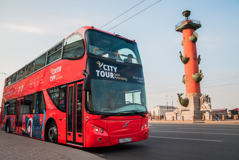 You won’t find a better place to admire the ever-changing views of St. Petersburg and its unique architecture than City Tour bus. Start your photo hunt here!You will easily recognize our buses by red color and pictures illustrating authentic stories of the excursion.City Tour is the first hop-on/ hop-off excursion in St. Petersburg.