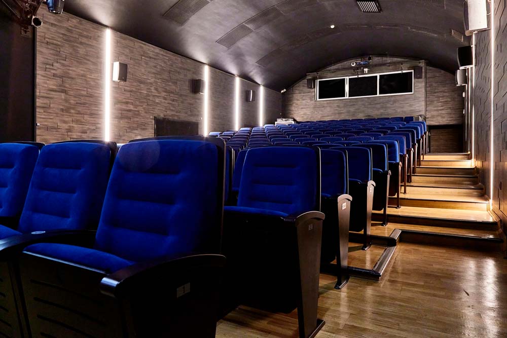Уютный камерный зал театра оснащен удобными мягкими креслами, расположенными так, что сцену видно, как на ладони, с любого места.