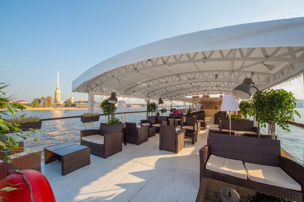 На верхней палубе судна имеется зона умиротворяющего отдыха с комфортными мягкими диванами и удобными сидениями у барной стойки. На теплоходе, оборудованном климатическими установками, даже в самую жаркую погоду можно ощущать нежную прохладу и вдыхать свежий воздух.