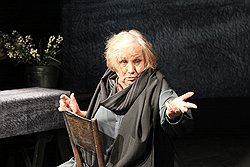 Вся постановка – это игра одной актрисы, Веры Быковой, отметившей в 2014 году свой 70-летний юбилей. Моноспектакль – непростая форма сценического действия, но яркий талант и необыкновенная способность к перевоплощению позволяют Вере Прокопьевне держать публику в напряжении больше часа. Ее героиня заставляет зрителя то сопереживать, то смеяться, то наслаждаться истинно народной речью, а подчас и плакать. Спектакль «Бабилей» - это дань памяти не только великому писателю, творчество которого так близко МДТ, но и Женщине, той самой, на которой держится вся русская история.