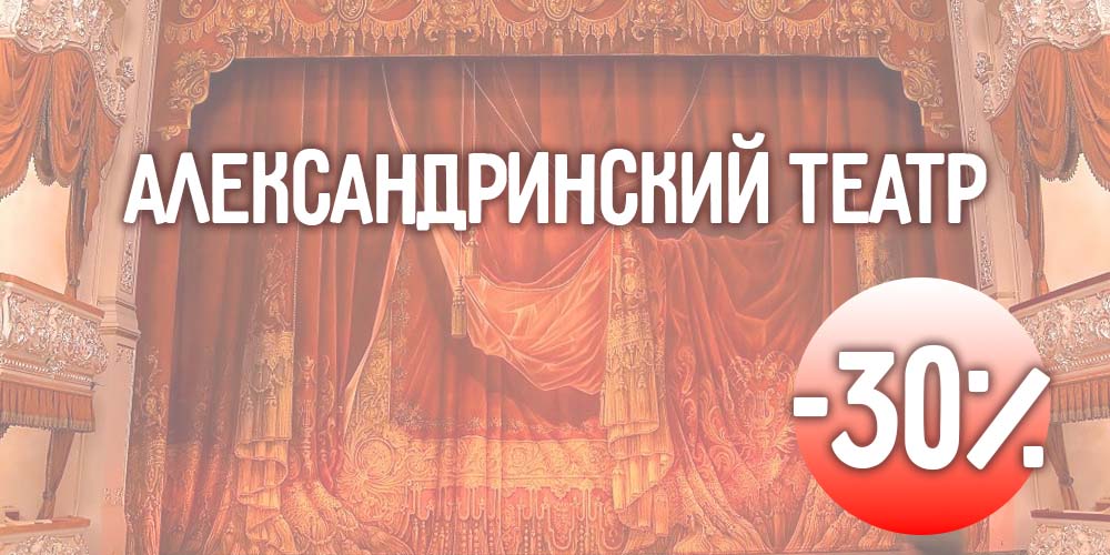 В рамках акции билеты в Александринский театр на избранные мероприятия можно приобрести со скидкой 30% по промокоду «ALEXANDR30»