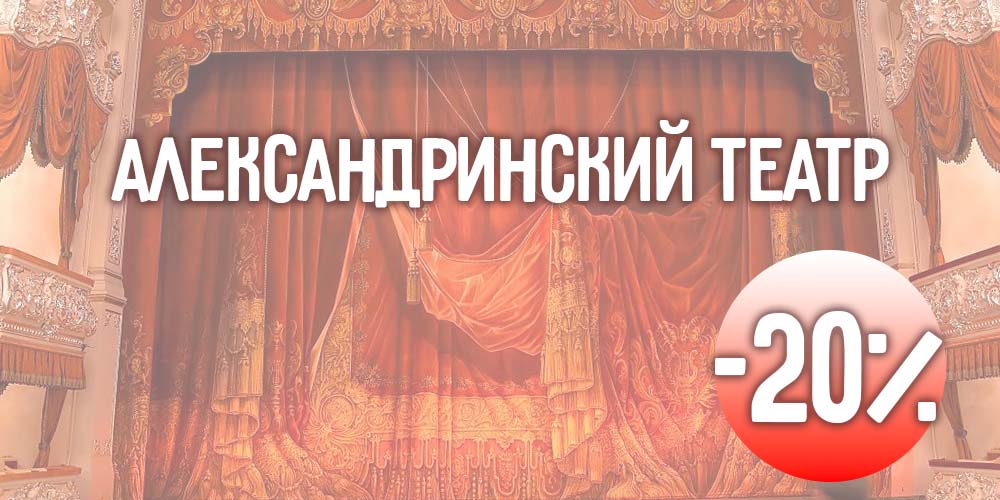 В рамках акции билеты в Александринский театр на избранные мероприятия можно приобрести со скидкой 20% по промокоду «ALEXANDR20»