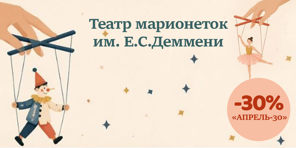 В рамках акции билеты на избранные спектакли Театра марионеток им. Е.С.Деммени можно приобрести со скидкой 30% по промокоду «апрель-30»