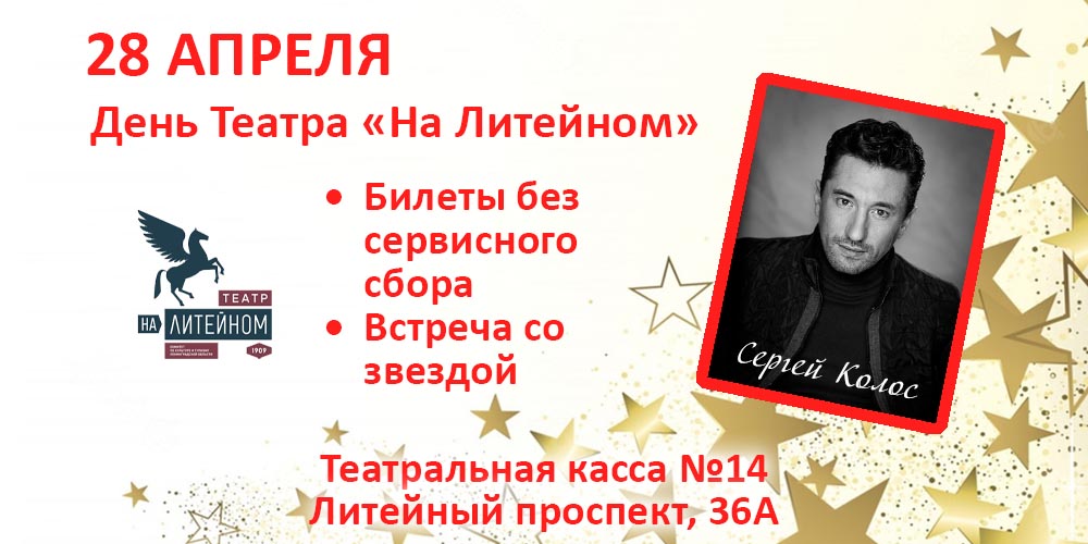 28 АПРЕЛЯ ДЕНЬ ТЕАТРА «НА ЛИТЕЙНОМ» В ТЕАТРАЛЬНОЙ КАССЕ №14