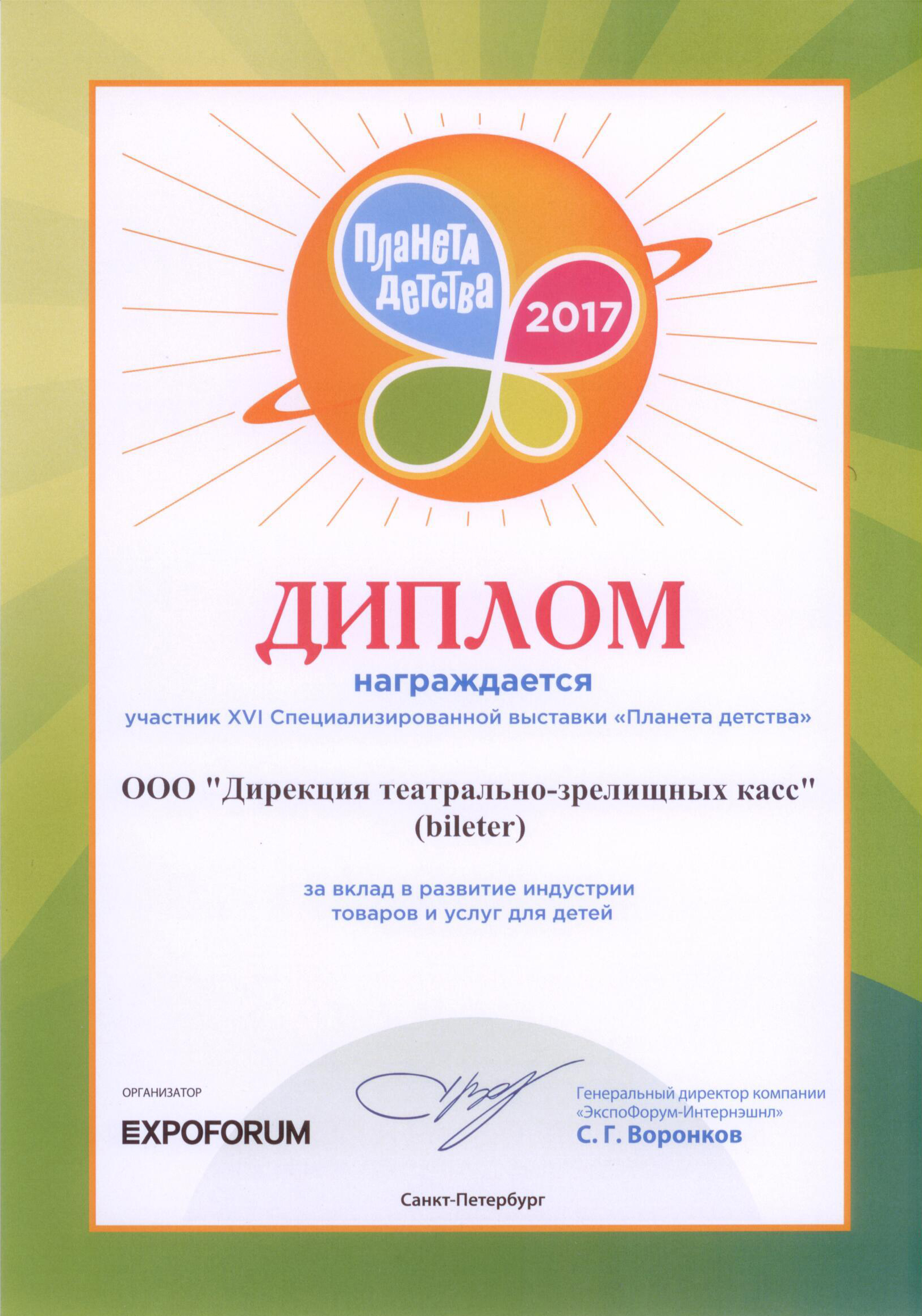 В 2017 году Дирекция театрально-зрелищных касс впервые приняла участие в специализированной выставке-ярмарке товаров и услуг для детей «Планета Детства».
