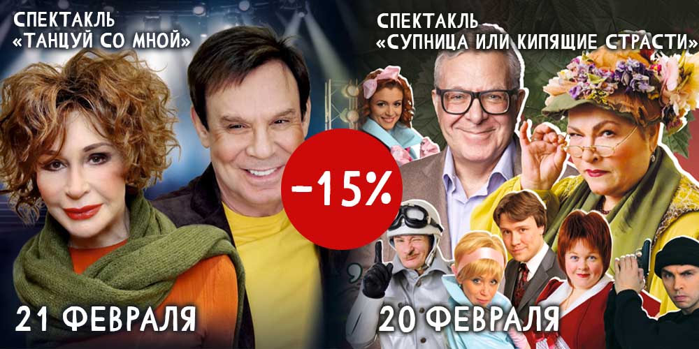 Скидка 15% на спектакли «Супница или кипящие страсти» и «Танцуй со мной» в ДК им. Ленсовета по промокоду «ТО-ТД15»