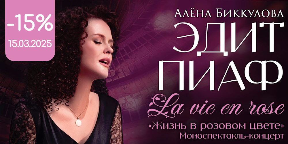 АКЦИЯ ко дню всех влюбленных: скидка 15% на авторский моноспектакль-концерт «Эдит Пиаф. Жизнь в розовом цвете» 15 марта 2025 по промокоду «ПИАФ15%»