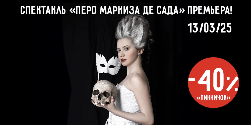 Скидка 40% на спектакль «Перо Маркиза Де Сада» 13 марта 2025 в Театральной Долине по промокоду «ПИКНИЧОК»
