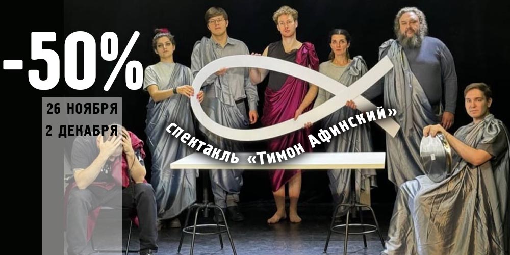 Скидка 50% на спектакль «Тимон Афинский» в Театральную Долину 26 ноября и 2 декабря 2024