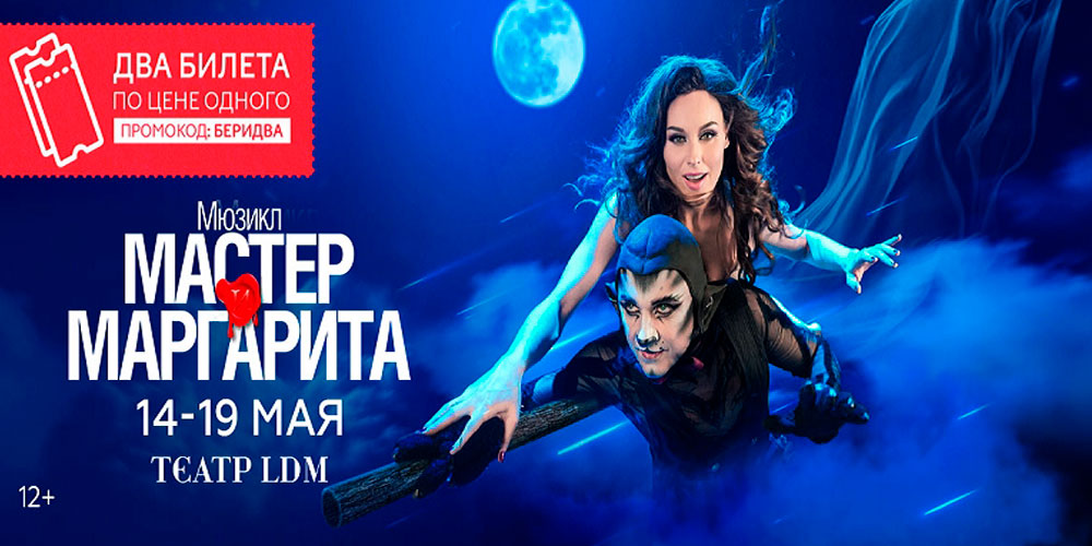 Два билета по цене одного в ЛДМ на мюзикл «Мастер и Маргарита» 14-19 мая 2024 по промокоду «БЕРИДВА»