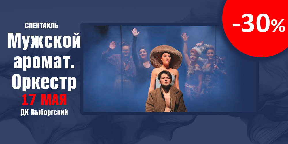 Скидка 30% на спектакль «Мужской аромат. Оркестр» в ДК Выборгский 17 мая 2024 по промокоду «ОРКЕСТР30»