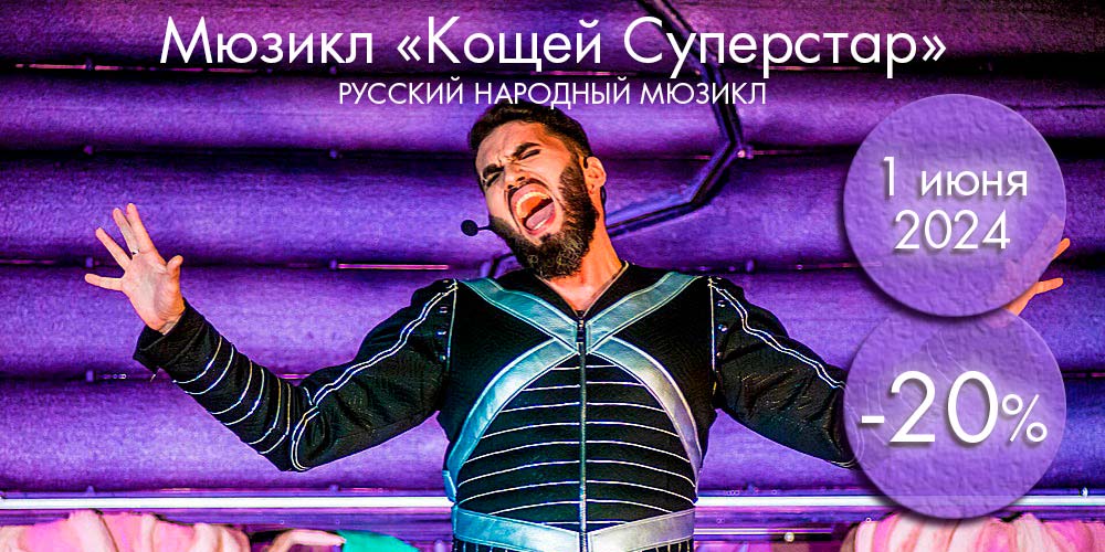 Скидка 20% на Мюзикл «Кощей Суперстар» в КЗ Колизей 1 июня 2024 по промокоду «КОЩЕЙ20»