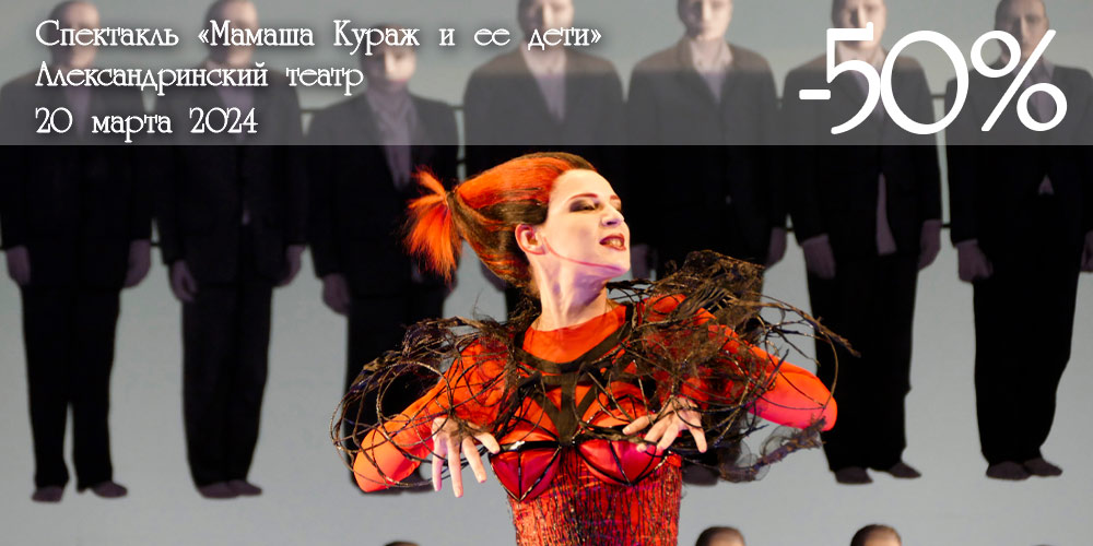 Скидка 50% на спектакль «Мамаша Кураж и её дети» 20 марта 2024 в Александринском театре по промокоду «ALEX_50»