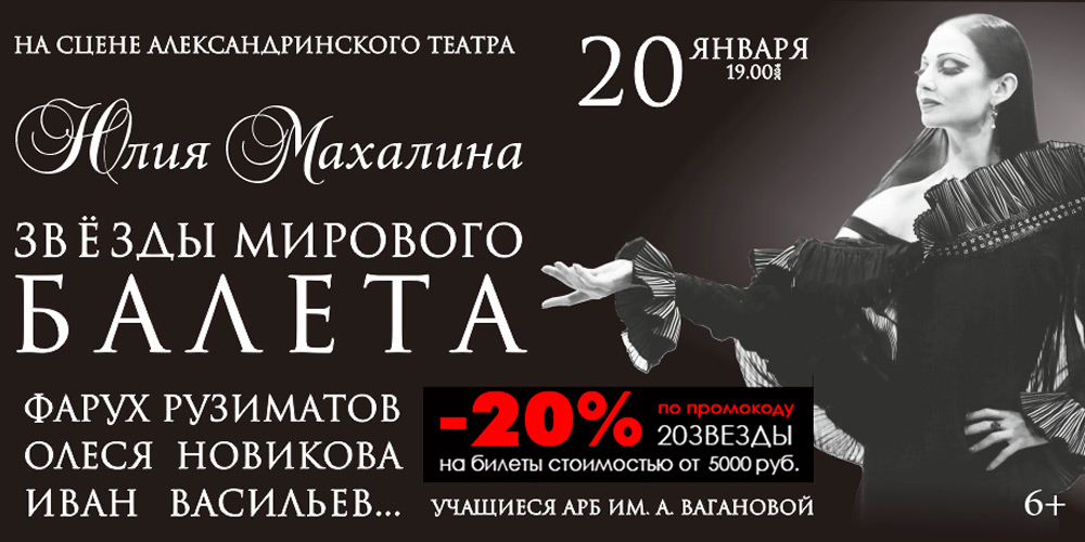 Скидка 20% на «Гала-концерт звезд балета» в Александринском театре 20 января (билеты стоимостью от 5000 р)