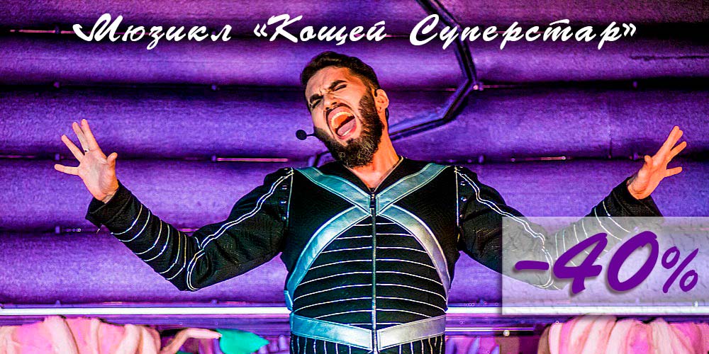 Скидка 40% на мюзикл «Кощей Суперстар» в КЗ Колизей 10 февраля по промокоду «КОЩЕЙ40»