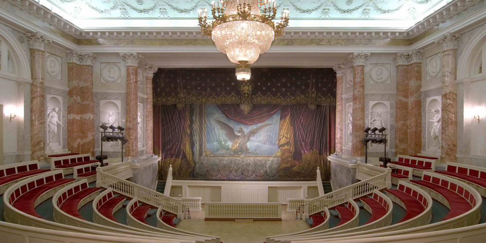 Уникальная возможность за один вечер почувствовать историю и душу России, побывать в потрясающих интерьерах, выпить приветственный бокал игристого вина, увидеть на сцене камерного зала лучшее в Санкт-Петербурге шоу «Почувствуй себя русским!».