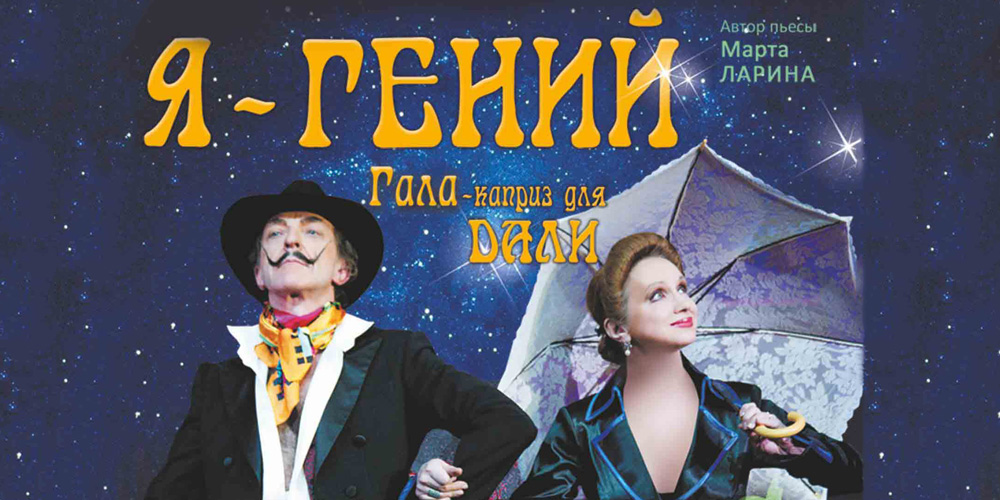 Спектакль «Я – Гений!» («ГАЛА-каприз для ДАЛИ») позволит заглянуть в замочную скважину замка таинственной жизни великого художника и подсмотреть непростые отношения Дали с его женой Галой и его земным «ангелом» Амандой Лир.
